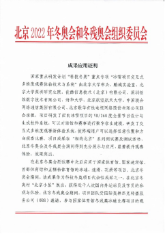 科技部和北京冬奥组委发来感谢信和成果应用证明